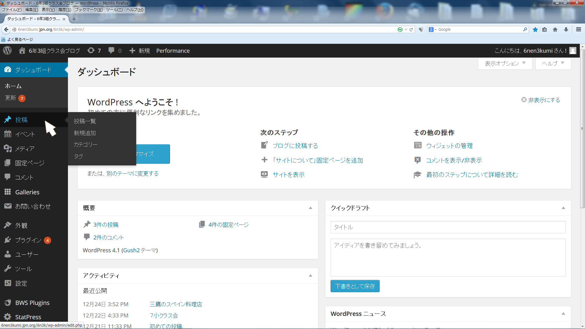 17、編集や新規投稿は右上のメニューからダッシュボードをクリックする。お疲れ様でした。 🙂
